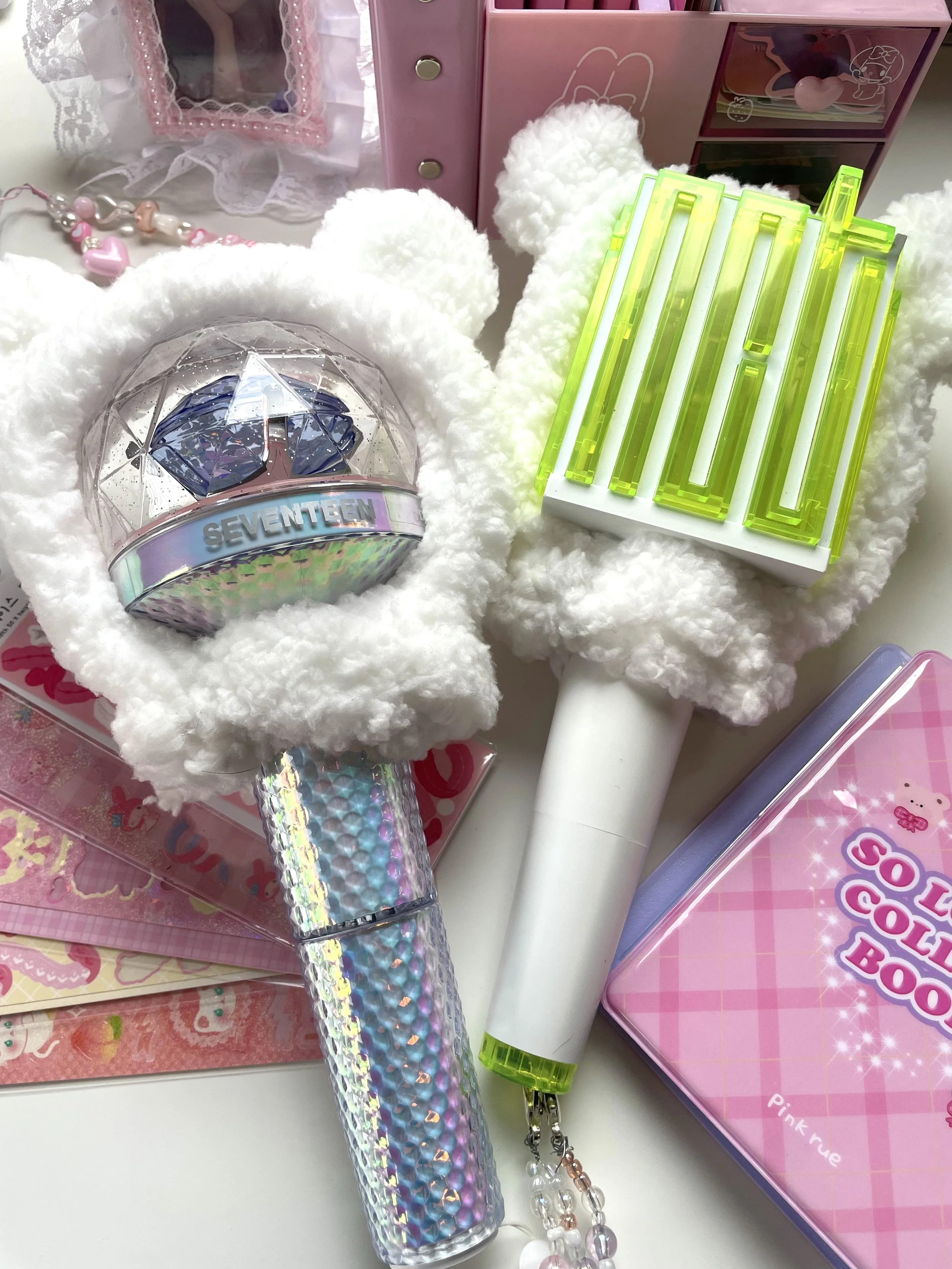I hand-sew plush lightstick covers and Im based in Los Angles, California. I currently have two designs, the plush polar bear and plush brown bear. I will be releasing more colors of the bear line to buy, like pink and black, also a new cape design. All the products are made with soft fleece fabric and sewn with Cotton and Polyester thread.